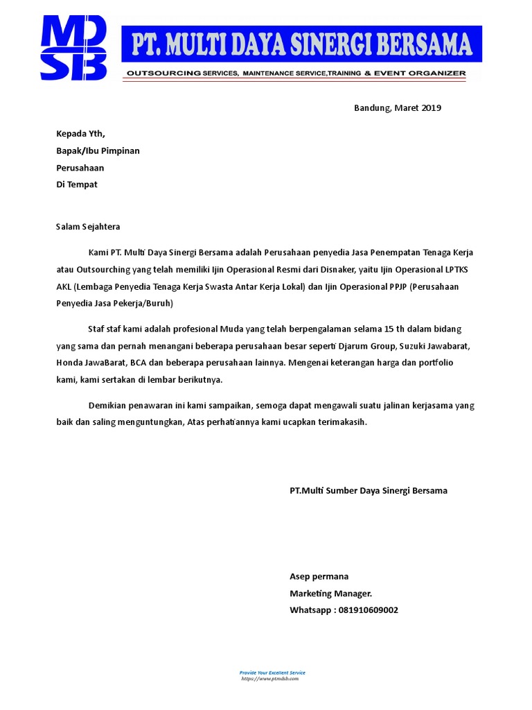 Contoh Surat Penawaran Kerjasama Jasa Outsourcing - Ruang Ilmu Contoh Surat Penawaran Kerjasama Jasa Outsourcing Download Contoh Proposal Penawaran Kerjasama Doc Proposal Download Banten Contoh Surat Penawaran Harga Kerjasama Paling Mudah : Biasanya surat penawaran ini dibuat oleh para pengusaha atau pebisnis dalam segi ekonomi berupa negosiasi.