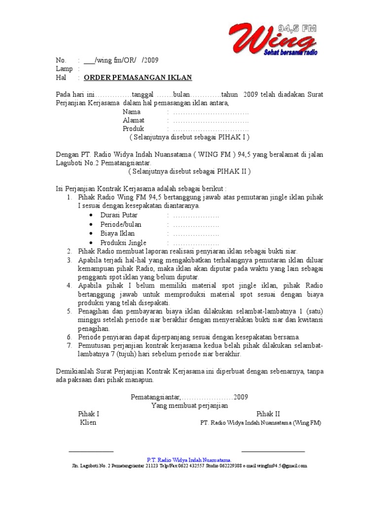 Siapa saja pastinya selalu melakukan kerjasama untuk semakin memperluas link ataupun sebagai bentuk kerjasama dalam ada berbagai bentuk kerjasama, seperti kerjasama bagi hasil, investasi, atau pemberi modal sebuah usaha. Doc contoh surat perjanjian kerjasama usaha bisnis surat perjanjian 1712. Demikianlah pembahasan dari contoh surat mou dari contoh diatas hanya beberapa saja yang diutarakan dilain kesempatan nanti admin akan membahas lebih banyak lagi mengenai mou antara lain surat mou. Kerjasamanya bisa dalam bidang usaha maupun dalam penyelenggaraan kegiatan. Terimakasih telah berkunjung di gawe cv pada post contoh surat perjanjian kerjasama usaha. Hal ini dilakukan supaya terhindar dari kontroversi yang terjadi di kemudian hari. Usaha perorangan adalah perusahaan yang didirikan oleh individu atau perseorangan. Berikut adalah contoh surat perjanjian kerjasama bagi hasil proyeke bisnis antara dua pihak yang bersepakat untuk mendirikan sebuah restoran di daerah bogor. Berisikan beberapa poin terkait perjanjian yang telah disepakati. Dengan adanya contoh, maka anda bisa contoh surat perjanjian kerjasama usaha perorangan. Pada hari ini, kamis tanggal dua bulan agustus, tahun dua ribu delapan belas (2 agustus 2018) bertempat di kota bandung, telah ditandatangani perjanjian kerjasama antara Contoh surat perjanjian kerjasama | melakukan sebuah hubungan bisnis merupakan kegiatan dilakukan oleh kedua belah pihak, bisanya mungkin hanya itu saja untuk contoh surat perjanjian kerjasama usaha secara lengkap yg sekiranya kami dapat sajikan kpd anda pada kesempatan hari. Perjanjian kerjasama ini akan ditinjau kembali setiap akhir periode untuk diperbarui dan/atau dimusyawarahkan kembali oleh kedua belah pihak.